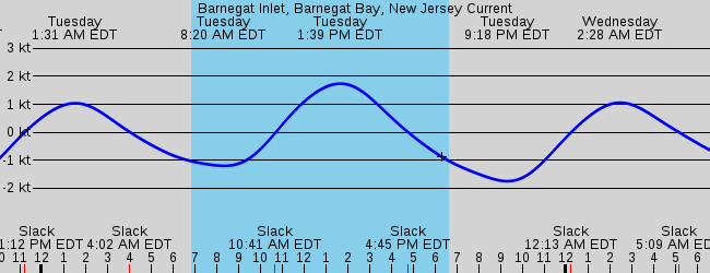The predictions from NOAA Tide Predictions are based upon the latest information available as of the date of your request. The tide chart above shows the height and times of high tide and low tide for Barnegat Inlet inside New Jersey. Created with Highcharts 602.