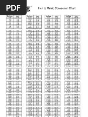 Metric Inch 116 00625 M2 15875 mm 18 01250 M4 31750 mm 316 01875 M5 47625 mm 14 02500 1M6 63500 mm 516 03125 M8 79375 mm 38 03750 2M10 95250 mm 716 04375 111125 2mm 12 05000 M12 127000 mm 916 05625 M14 142875 mm 58 06250 M16 158750 mm 1116. Inch to Metric Conversion Table Inch Decimal. 27559 8 m.