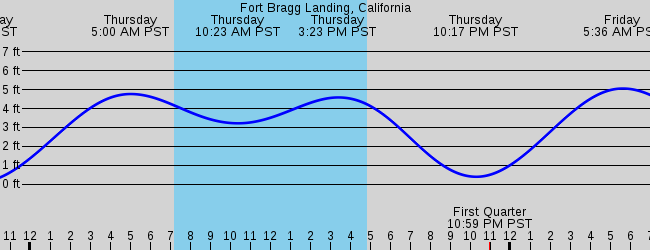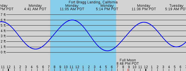 Tide chart fort bragg ca. Sun rise tomorrow is 730 AM. High tide 1227am 541ft low tide 519am 246ft high tide 1127am 700ft low tide 615pm -086ft Thursday February 3 2022. Last Spring High Tide at Fort Bragg Landing was on Sun 19 Dec height.